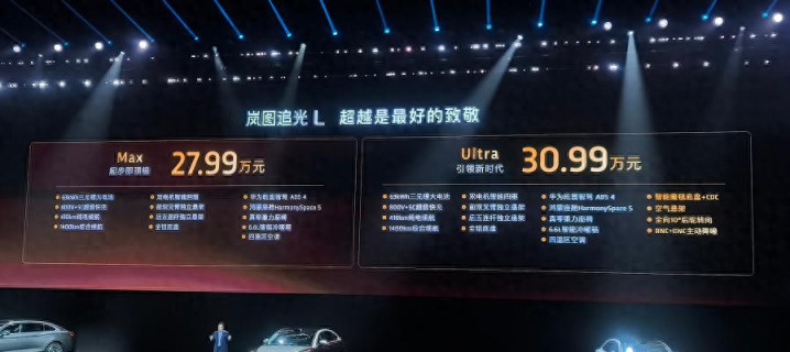 今晚,岚图年底重磅王炸,全新追光L正式上市,两个版型,MAX版27.99万,Ultra版30.99万,这价格配上这配置,摆明了就是冲着56E去的。